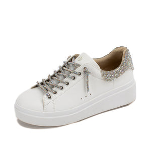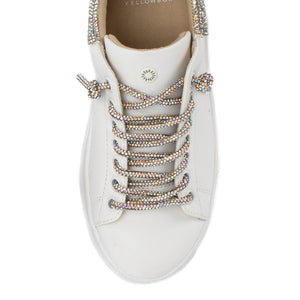 If you want to add just a little sparkle to your classic tennies (tennis shoes), we adore the EVALIA sneakers with a rhinestone bedazzled heel tab and to-die-for rhinestone covered shoe laces. These are too cute to play around with so we recommened lacing them to your desired fit and slipping them on and off for casual wear.