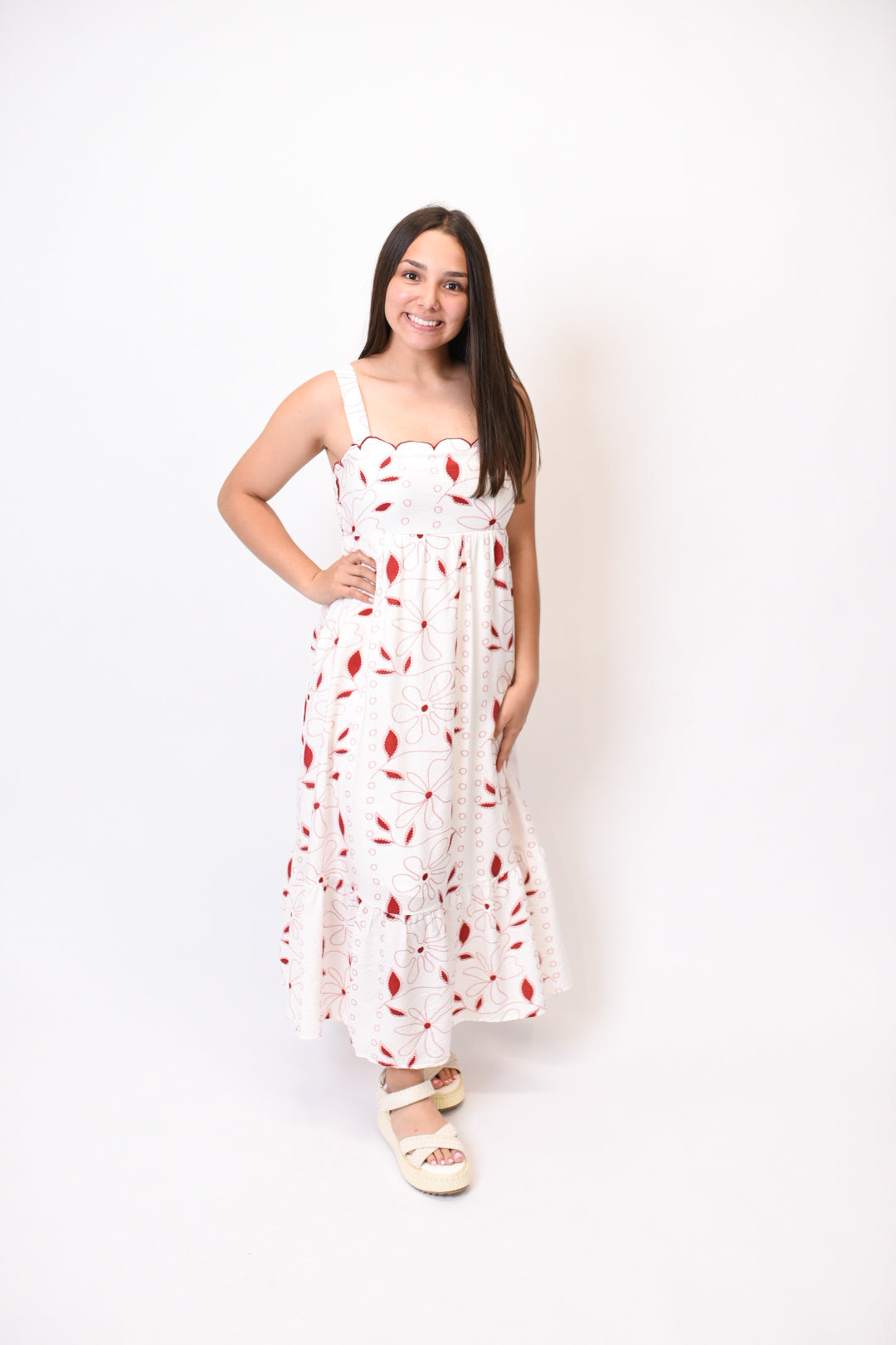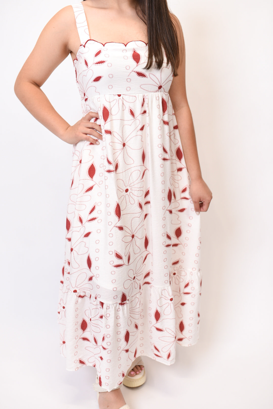Whether you're attending a wedding, enjoying a weekend getaway, or simply want to feel beautiful on a sunny day, this midi dress delivers timeless style with modern comfort. The adjustable straps and smocked back ensure a perfect fit, while the floral print and scallop details create an unforgettably feminine look.