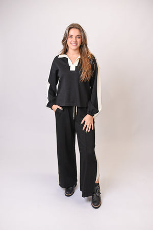 Effortlessly polished and unbelievably comfortable, The City Sleek Lounge Set brings elevated athleisure to your everyday wardrobe. With its chic contrast details and fluid drape, this matching set blends modern style with cozy ease — perfect for relaxing, running errands, or looking put-together with minimal effort.