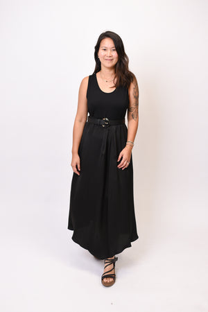 When the night calls for something effortlessly chic, reach for the Evening Out Midi Dress. With its soft drape, subtle sheen, and flattering pleated front, this dress blends sophistication with comfort. The asymmetrical hem and mixed fabric design give it movement and depth — the kind of piece that shines on its own or layers beautifully under a vest or wrap.