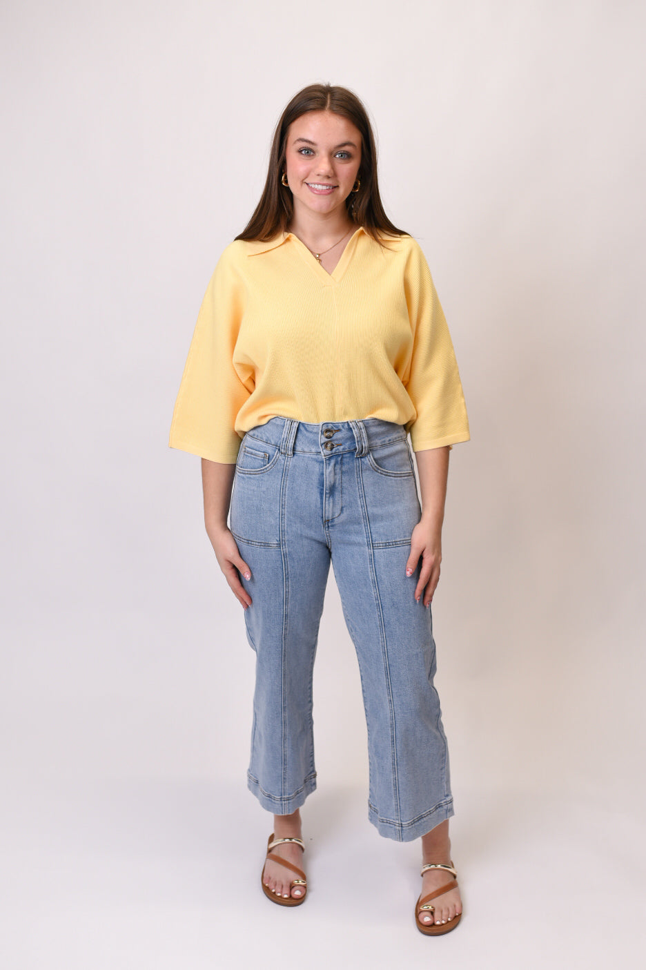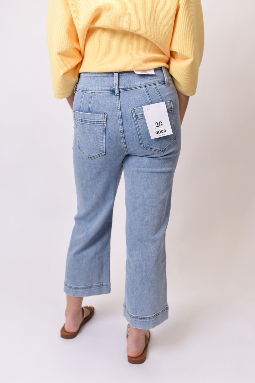 From morning meetings to evening plans, the All Day Wide Leg Crop Jeans are designed to keep you looking polished and feeling comfortable. The light wash and cropped length make these jeans a fresh, modern staple that transitions seamlessly through your busy day.