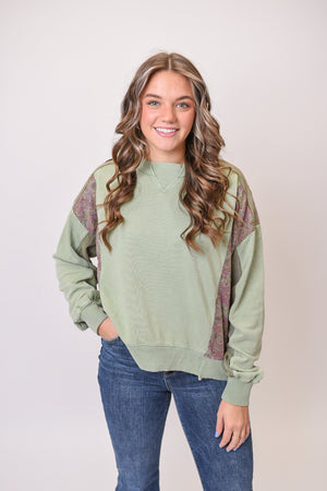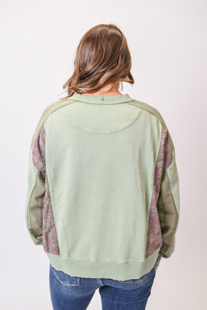 The Vintage Vibes Pullover is where cozy meets cool. Designed with a mix of soft paisley contrast fabric and a mineral-washed cotton body, this top brings an easy-going, lived-in look that feels like it’s been your favorite for years. The drop shoulder and boxy fit give it that relaxed boho vibe, while the raw-edge details and banded hem keep it modern and flattering.