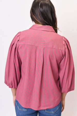 Softly tailored with a touch of charm, the Rosie Stripes Blouse brings an elegant ease to your everyday wardrobe. The rose-toned stripes and subtle puff sleeves lend a romantic feel, while the button-down silhouette keeps it perfectly polished for work or dinner out.