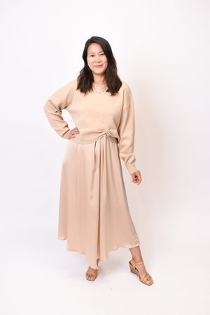 Effortlessly chic and subtly playful, the Twist of Fate Knit Top brings modern style to any outfit. With its soft knit texture, knotted hem, and slightly cropped fit, it’s the perfect lightweight layer to dress up or down. Designed with a relaxed drop shoulder and classic round neckline, it adds a touch of easy polish to your wardrobe.