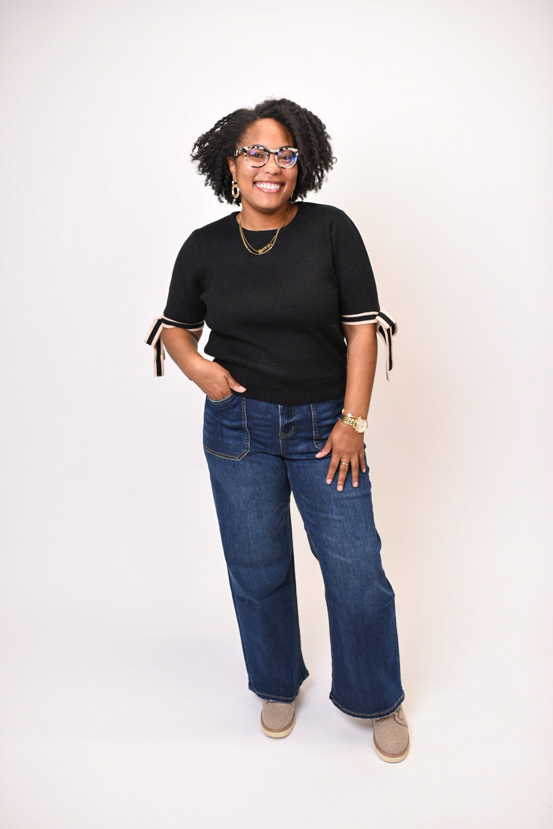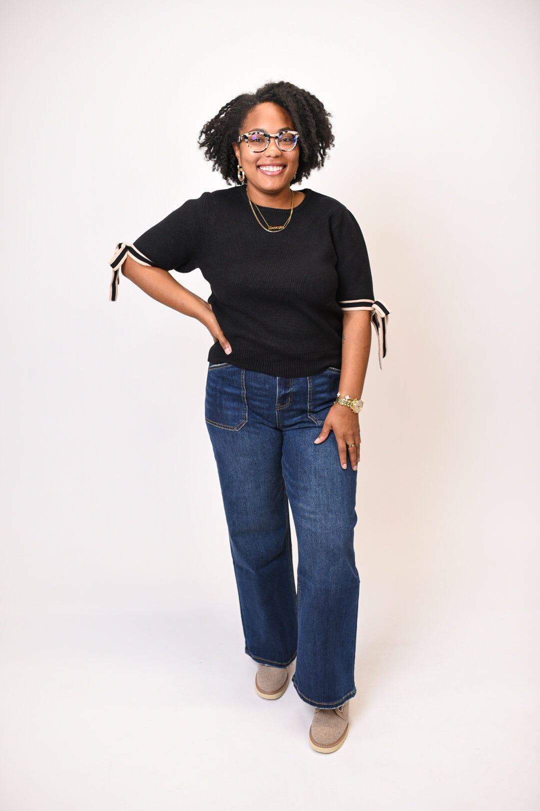 Bow Tied Sweater Top in Black