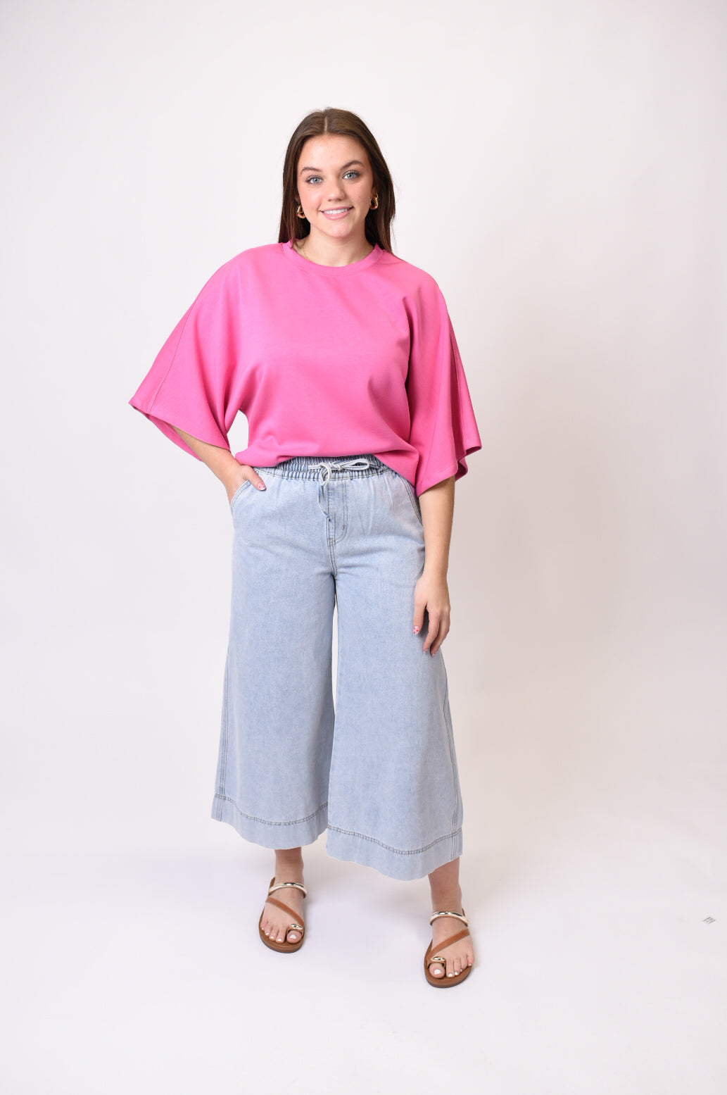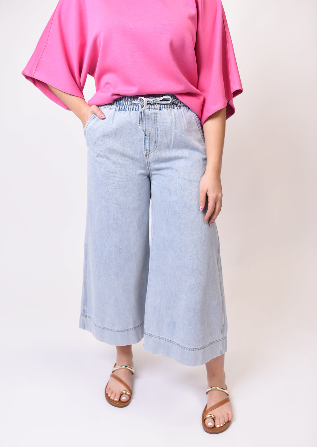 - Relaxed wide-leg silhouette with cropped length