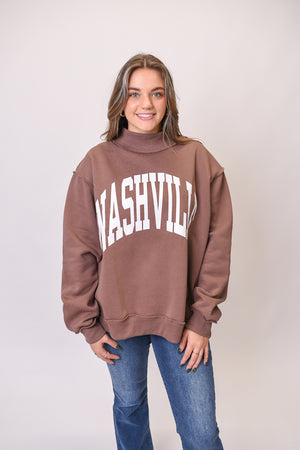 'NASHVILLE & BROADWAY' Print Reversible Mockneck Sweatshirt