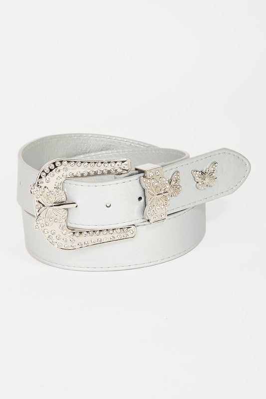 This belt brings a luxurious butterfly rhinestone studded style. Savor the allure of detailed craftsmanship in this exquisite accessory.