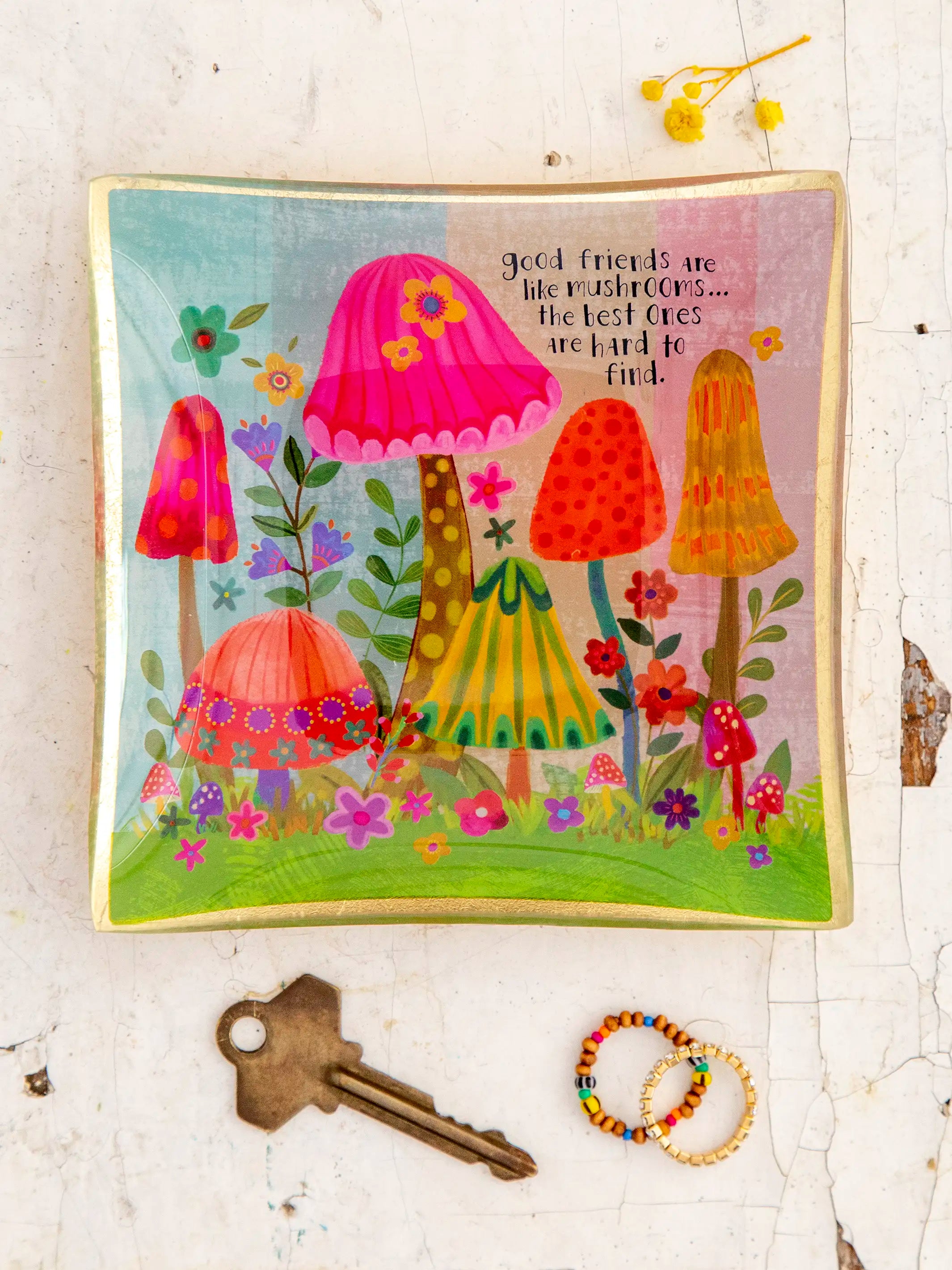 - Mushroom design with "Good friends" messsge