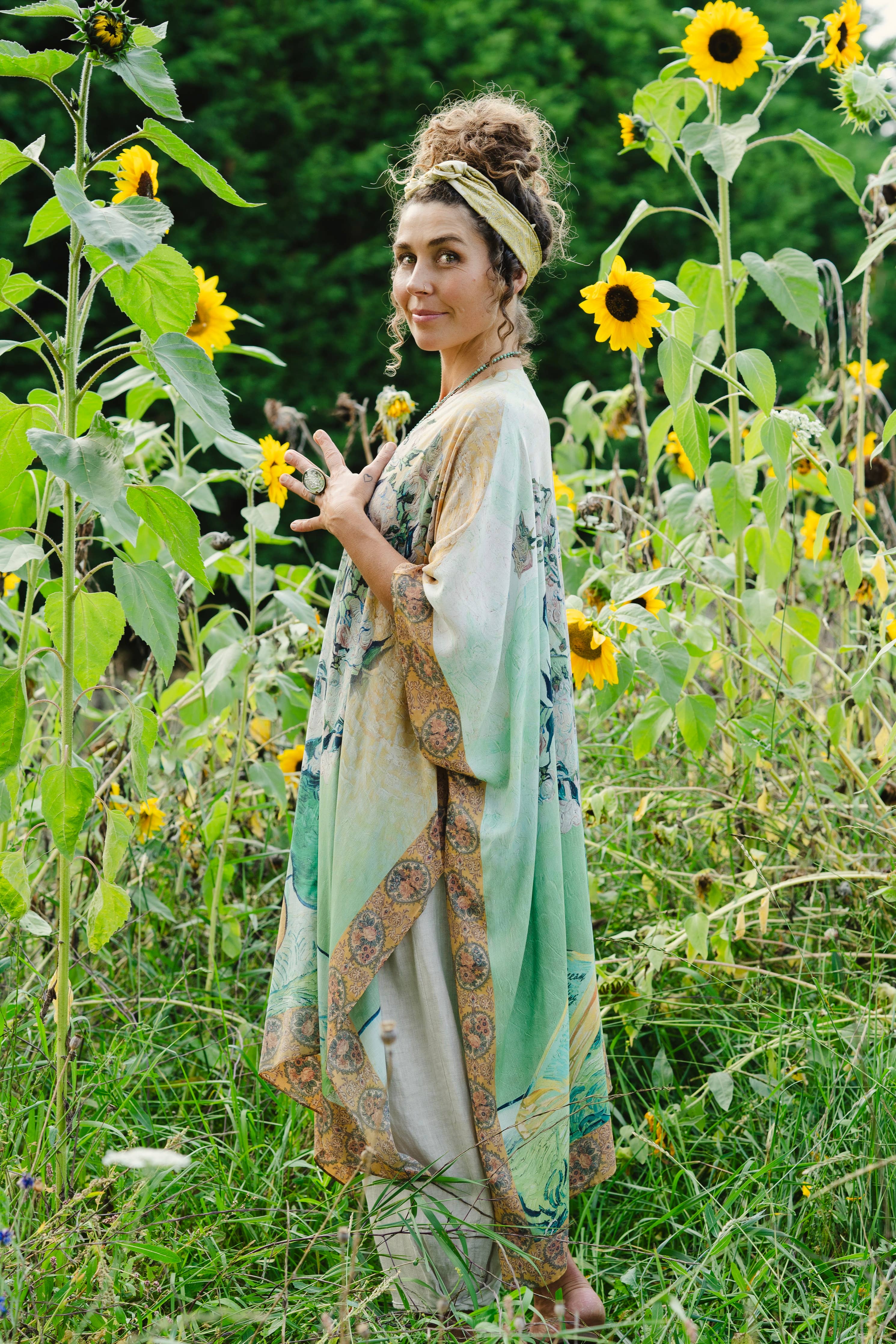 "Step into a masterpiece! This piece celebrates the vibrant brilliance of Van Gogh’s iconic paintings, and is our heartfelt tribute to the bravery and beauty of the artist. We combined several of Van Gogh’s works to create this print — including his infamous “Roses” (1890), painted during his time at the Saint-Paul-de-Mausole asylum, which captures the delicate beauty of blooming flowers as a symbol of hope. The words “I dream my painting and I paint my dream”, written in the book on the table, is our very favorite quote from the artist himself. As a significant, final touch, we added the eye from Van Gogh’s “Self Portrait with a Straw Hat” (1887), a painting which offers an intimate glimpse into the artist’s soul."