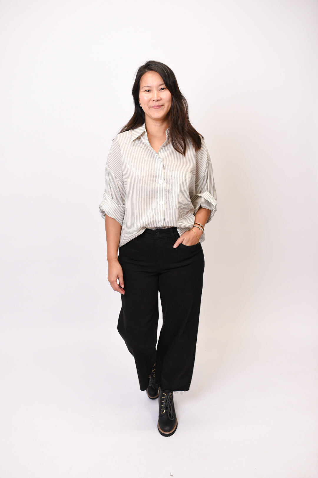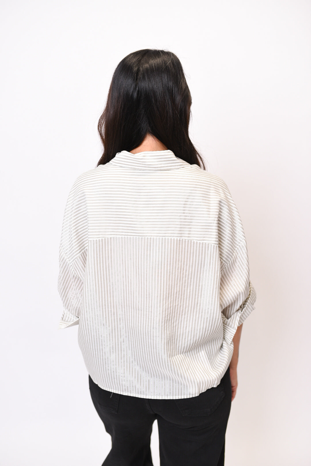 Effortlessly chic with a modern twist — this striped blouse blends comfort and sophistication. The soft Tencel fabric drapes beautifully, while the subtle hint of shimmer from the Lurex thread adds just the right touch of polish. With a relaxed fit and short dolman sleeves, it’s the kind of piece that looks put-together without even trying.