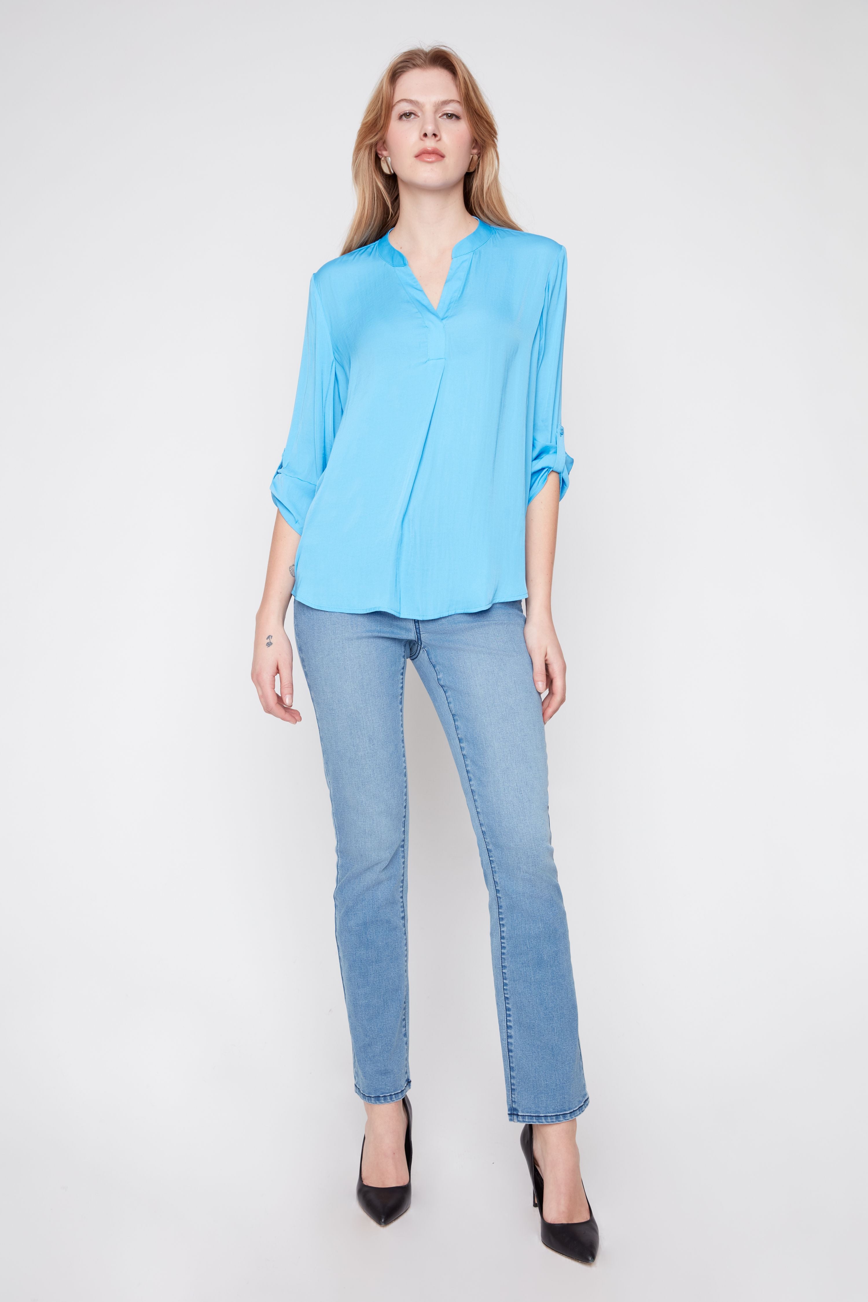This is the kind of blouse that simplifies your wardrobe. Pair it with tailored pants and heels for the office, tuck it into a midi skirt for brunch, or wear it with jeans and flats for casual Friday. The wrinkle-resistant fabric means it's perfect for travel, too—just pull it from your suitcase and go. It's refined style made effortless.