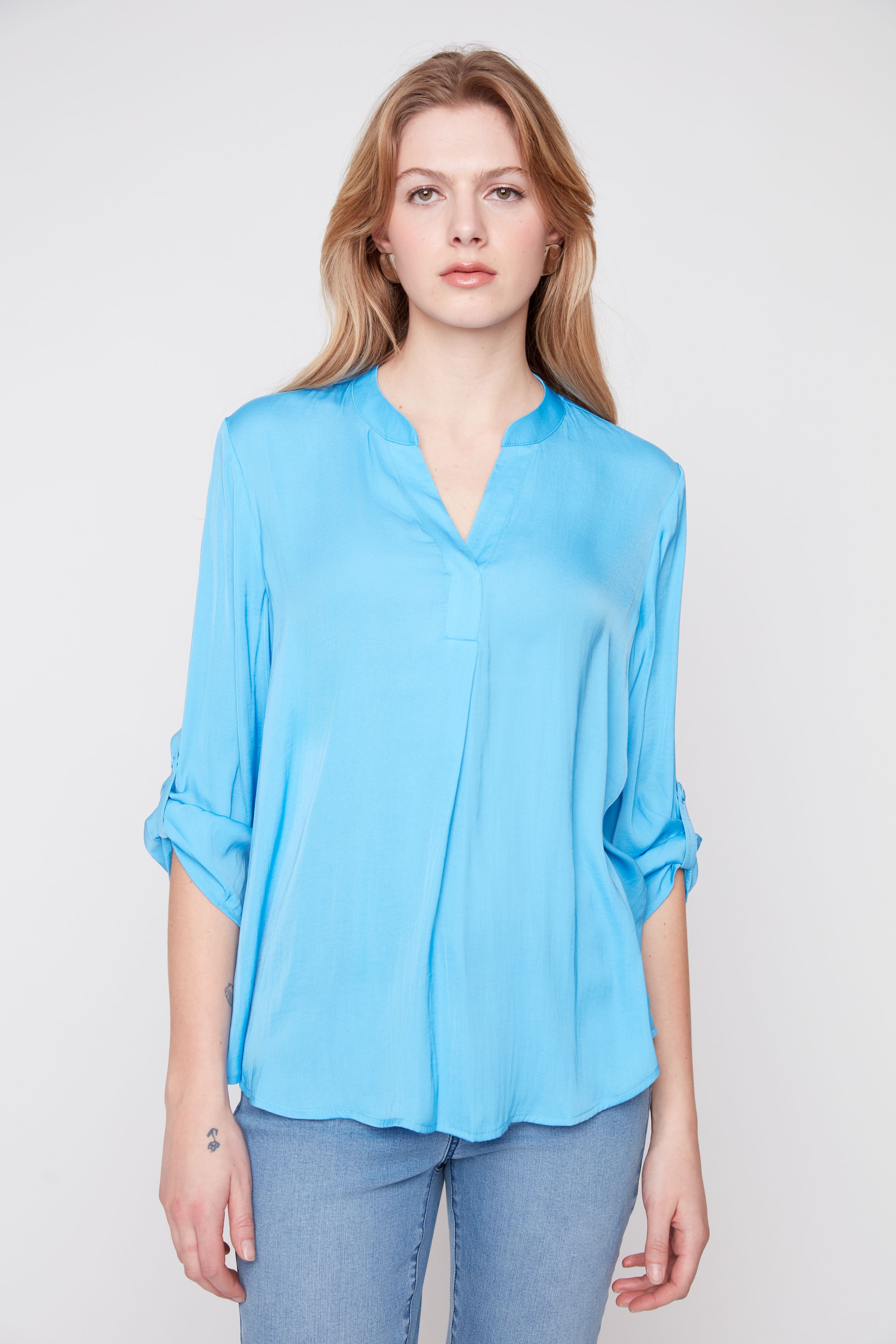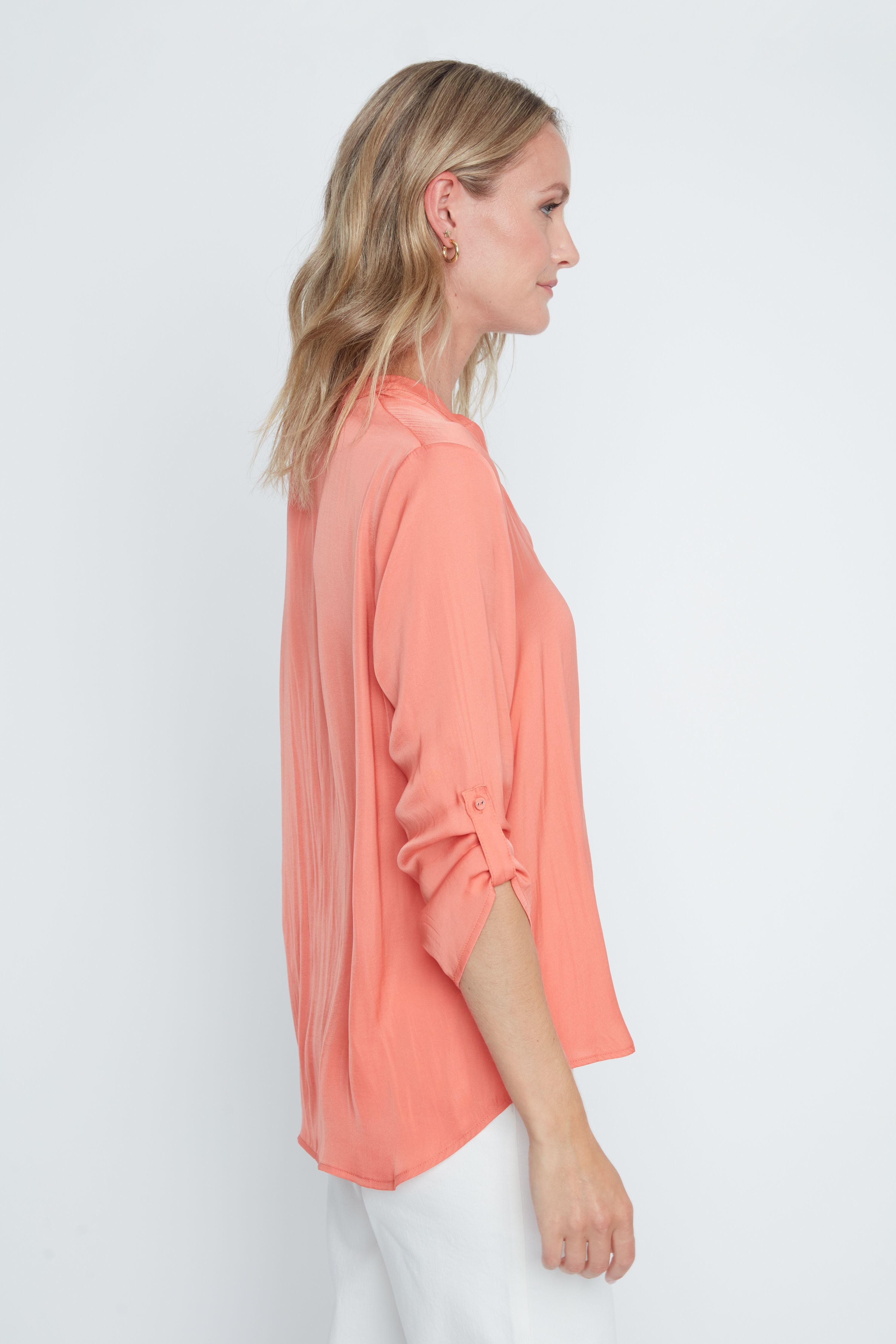 The classic silhouette features clean lines and a relaxed fit that flatters without clinging. The lightweight fabric drapes beautifully and breathes well, making it comfortable for year-round wear. Whether you're layering it under a blazer for the office or wearing it solo with your favorite jeans, this blouse delivers that polished look you want with the ease you need.