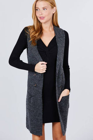 SLEEVELESS NOTCHED COLLAR WITH SIDE POCKET LONG SWEATER VEST FABRIC: SWEATER 78% ACRYLIC 15% NYLON 7% POLYESTER - new arrivals, new 2025, back in stock, bestsellers, active basic, active usa, sweater vest, winter, fall, outerwear, long vest, women vest, essential, must have, must-have