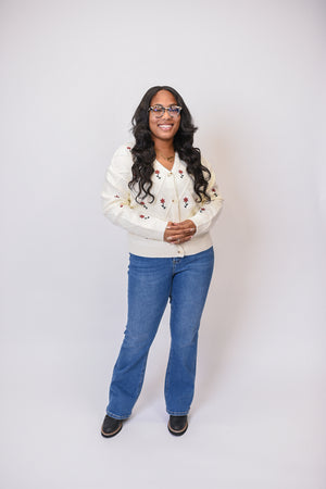 Bring vintage-inspired charm into your everyday wardrobe with the Garden Stitch Cardigan. This cozy cream knit is adorned with delicate red floral embroidery and a subtle diamond pattern that adds texture and warmth. Designed with a roomy, relaxed fit and classic button front, it’s the perfect blend of comfort and elevated style for any season.