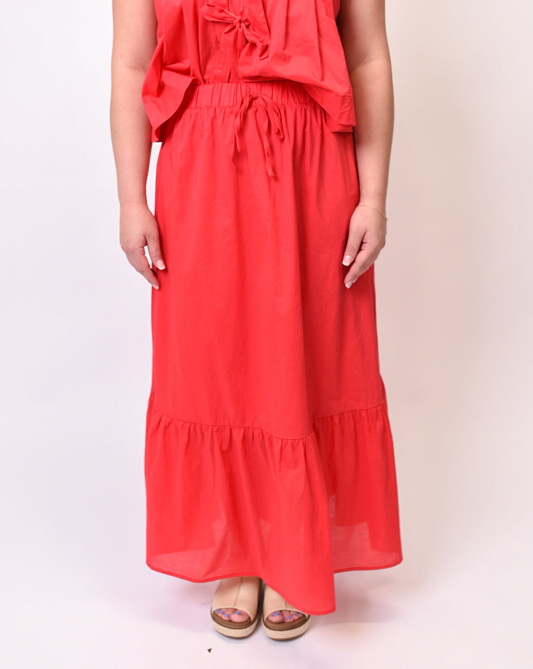 Embrace effortless elegance with this charming tiered midi skirt. Designed with a romantic flowing silhouette and crafted from breathable cotton, this skirt is your perfect companion for warm-weather style.