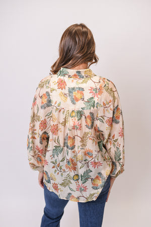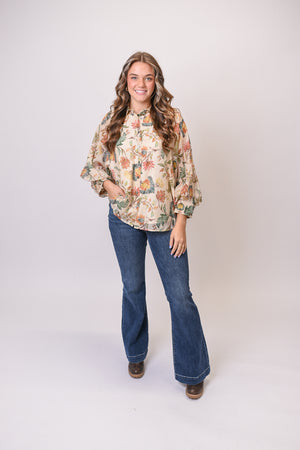Soft, flowy, and full of charm—this floral blouse feels like fall poetry in motion. Its dreamy beige base and delicate print make it an effortless choice for both workdays and weekends, while the lightweight woven fabric adds a graceful drape that flatters every figure.
