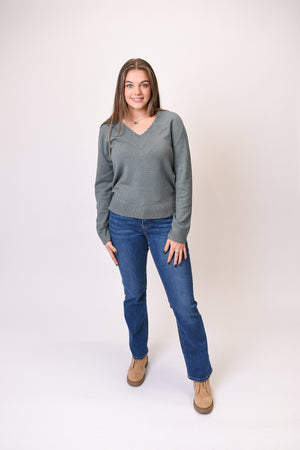 This beautifully soft sweater brings just the right amount of elegance to your everyday wardrobe. The scalloped neckline and sleeves give it a refined, feminine feel, while the relaxed fit makes it easy to wear from workday to weekend. Cozy without bulk and polished without trying — the perfect blend.