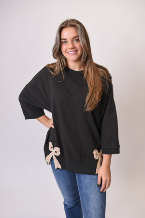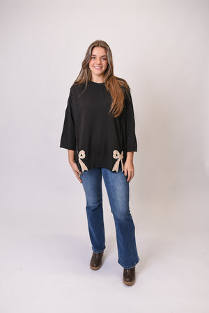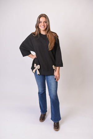 Cozy meets playful in the Ribbon & Relax Pullover. This oversized sweatshirt pairs a roomy drop-shoulder cut with patchwork floral bows for a touch of whimsy. Easy to wear and full of charm, it’s the kind of piece that makes “casual” feel just a little more special.