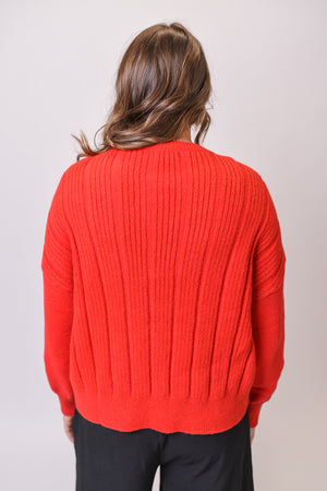 This red cardigan is holiday charm wrapped in cozy knit form. The playful pom detailing and black velvet bow ties bring a sweet vintage touch, making it the perfect mix of flirty and festive. Soft and fitted, it’s the statement piece you’ll want for every holiday soirée.