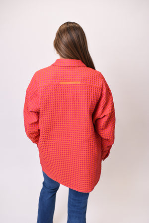 A relaxed layering piece with texture and personality, the Very Best Waffle Knit Shacket blends the ease of a favorite top with the structure of a lightweight jacket. The two-tone waffle texture adds depth while the oversized fit keeps it comfortable and easy to style. Wear it buttoned up or layered open for effortless everyday outfits.