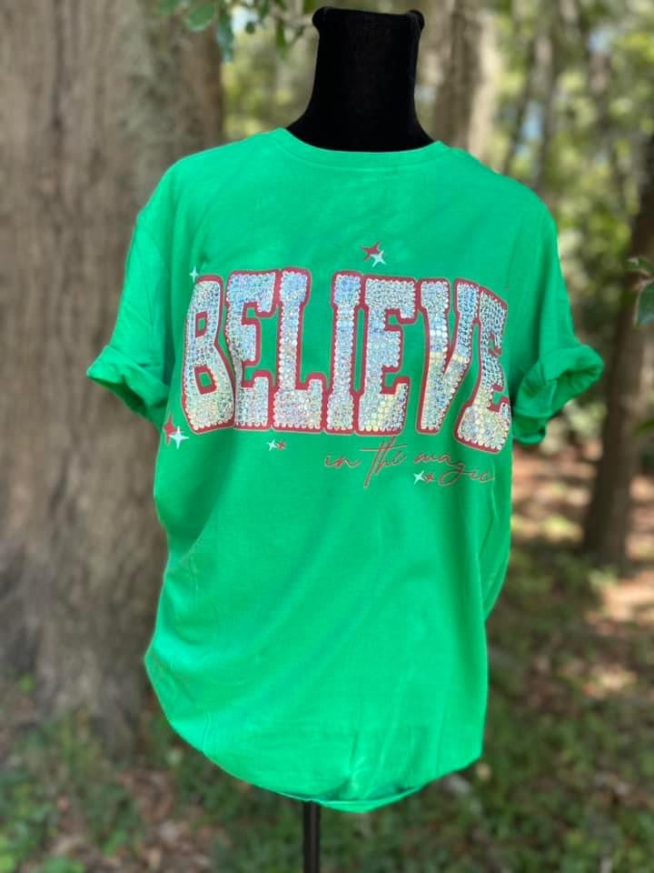 Believe Spangle Green Graphic Tee