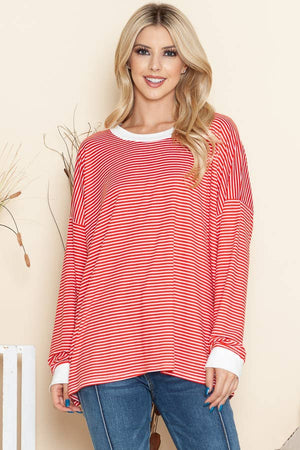 This striped tunic pullover brings that laid-back, weekend-ready feel with a super-soft finish you’ll reach for again and again. Its boxy oversized shape creates a relaxed, comfy silhouette, while the contrast neckline and cuffs keep the look fresh and polished. Light, stretchy, and effortless — it’s the definition of throw-on-and-go.