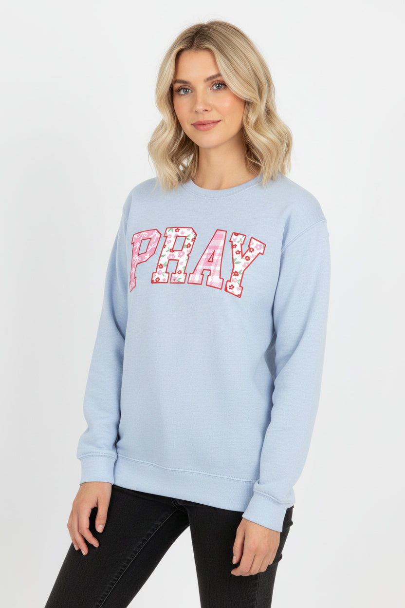 Elevate your everyday wardrobe with this faith-inspired graphic sweatshirt that combines comfort with meaningful style. Crafted from premium unisex sponge fleece, this pullover features a beautifully hand-printed PRAY design with an eye-catching pattern.