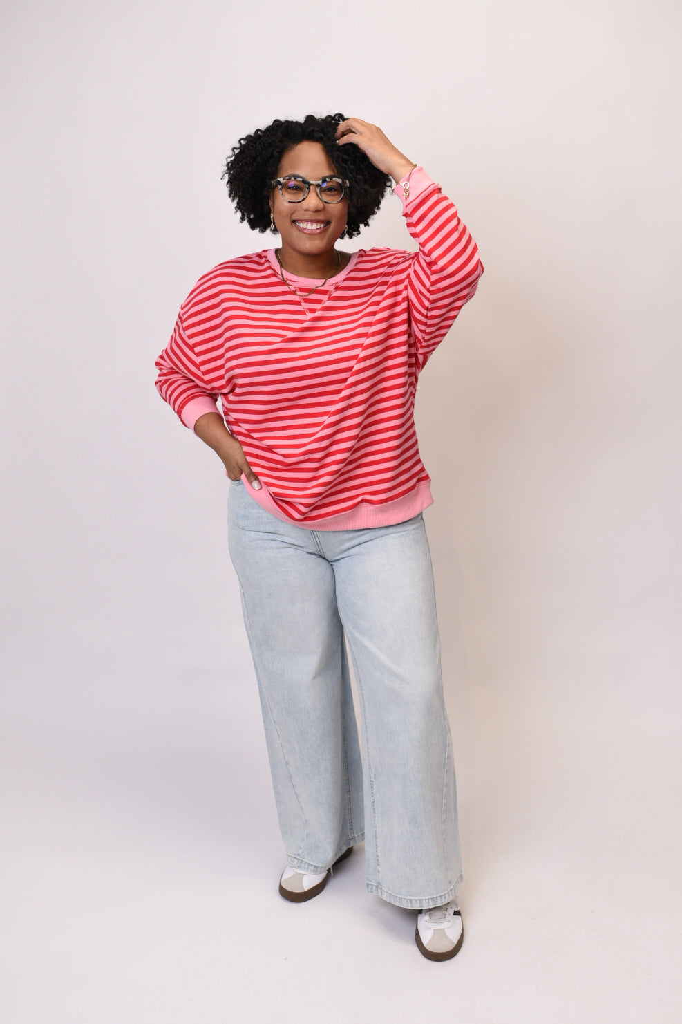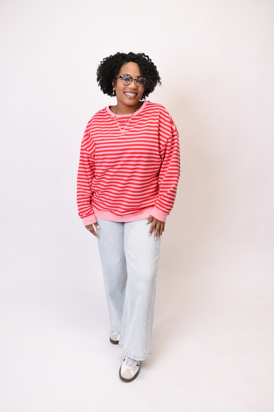 Meet your new go-to layer—the Sweet Stripes Pullover combines cozy comfort with effortless style in a relaxed, oversized silhouette you'll reach for again and again.